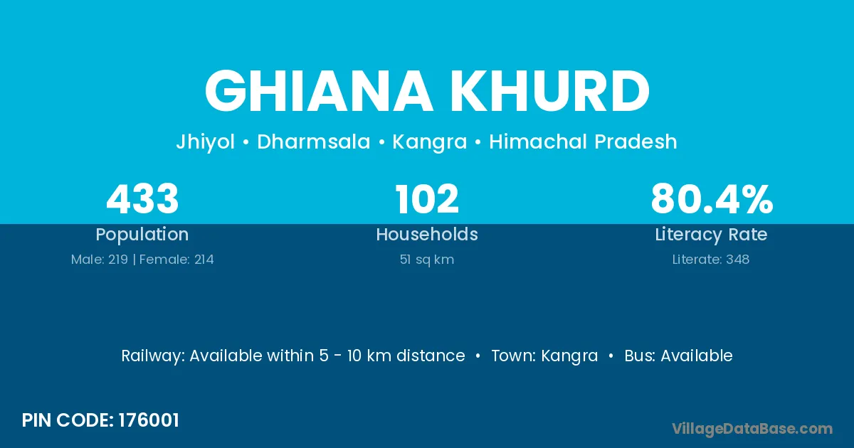 Ghiana Khurd village has a total population of 433 people, of which 219 are males and 214 are females.