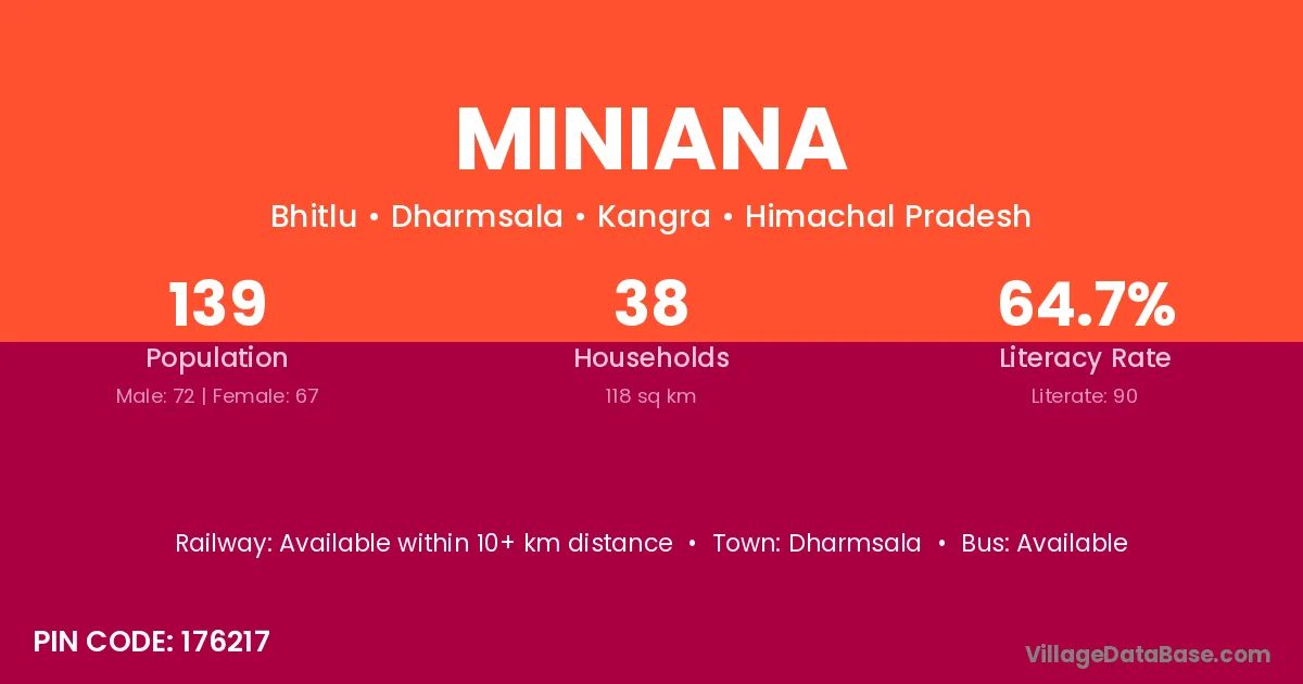 Dharmsala is the nearest town to Miniana village for major economic activities