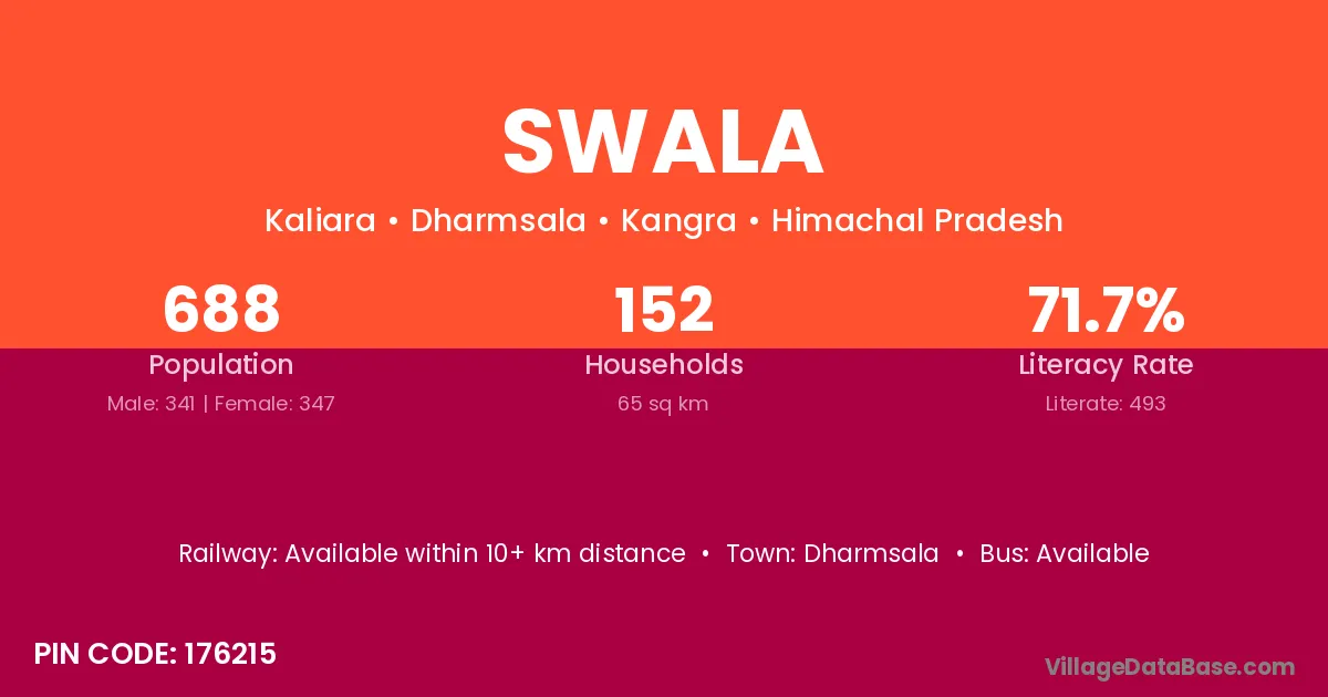 Dharmsala is the nearest town to Swala village for major economic activities