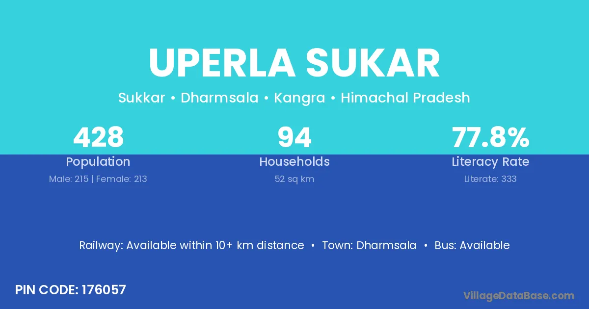 Dharmsala is the nearest town to Uperla Sukar village for major economic activities