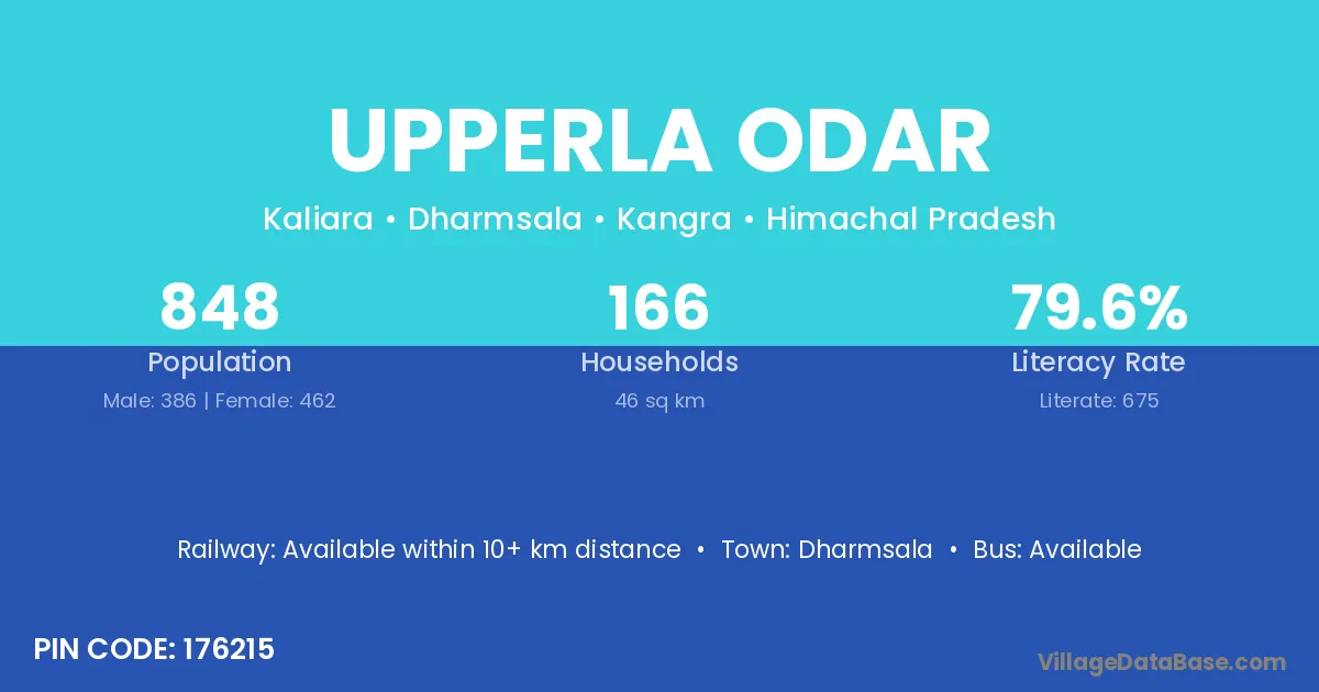 Dharmsala is the nearest town to Upperla Odar village for major economic activities