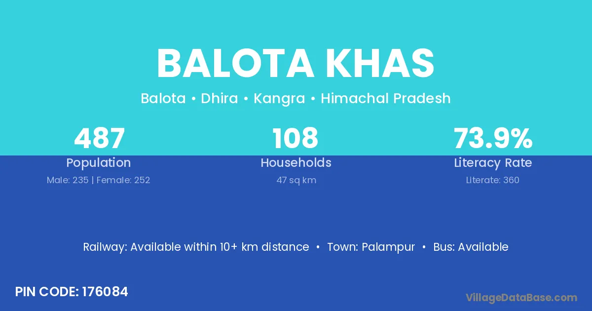 Palampur is the nearest town to Balota Khas village for major economic activities