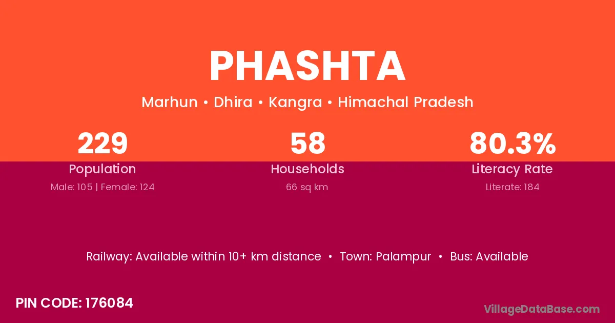 According to Census 2011 information, the village code of Phashta village is 176084.