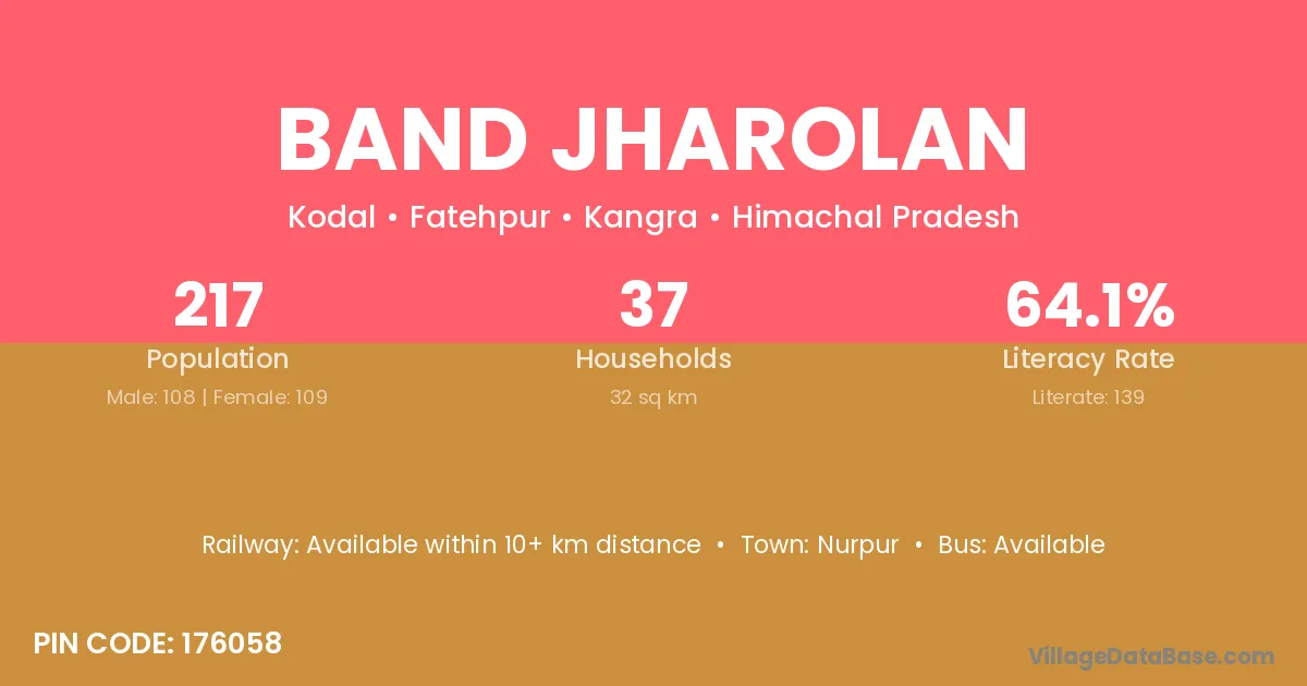 Band Jharolan village has a total population of 217 people, of which 108 are males and 109 are females.