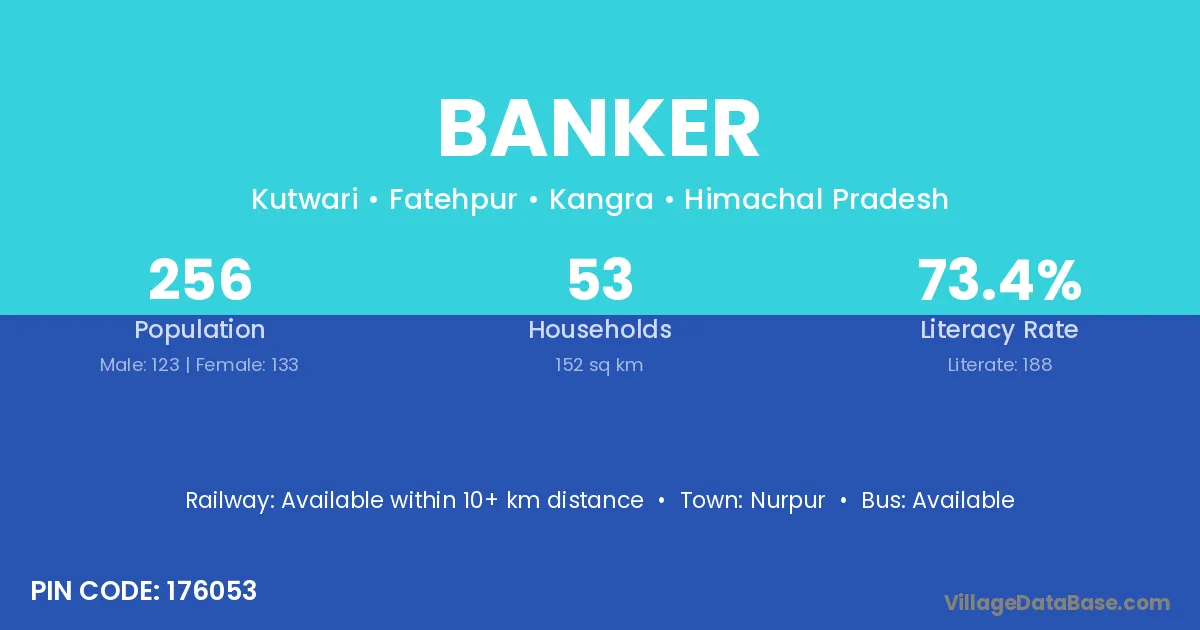 Banker village has a total population of 256 people, of which 123 are males and 133 are females.