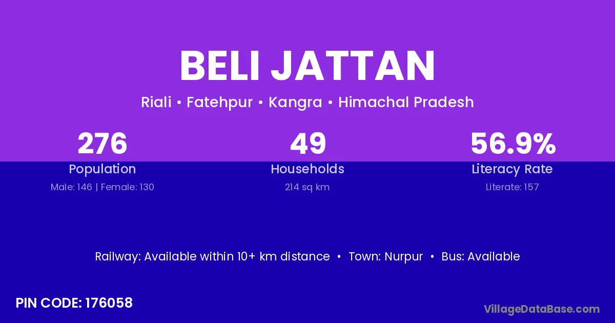 Beli Jattan village has a total population of 276 people, of which 146 are males and 130 are females.