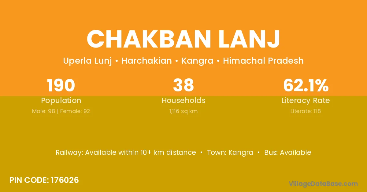 Kangra is the nearest town to Chakban Lanj village for major economic activities