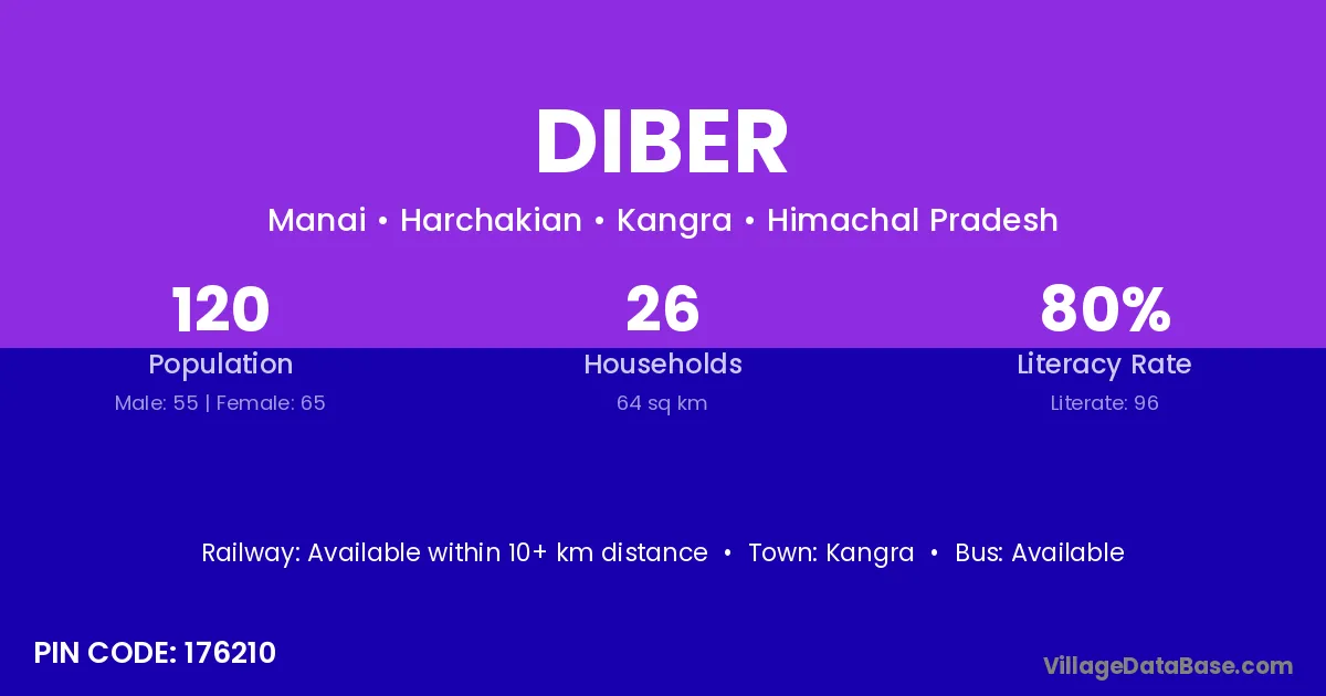 Diber village has a total population of 120 people, of which 55 are males and 65 are females.