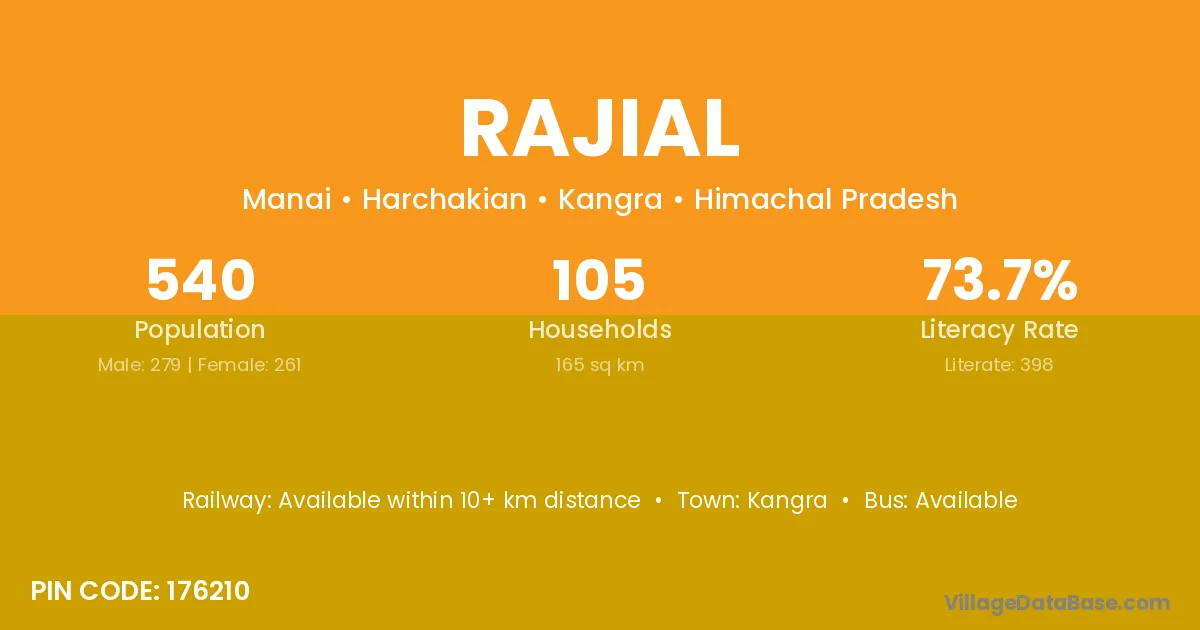 Kangra is the nearest town to Rajial village for major economic activities