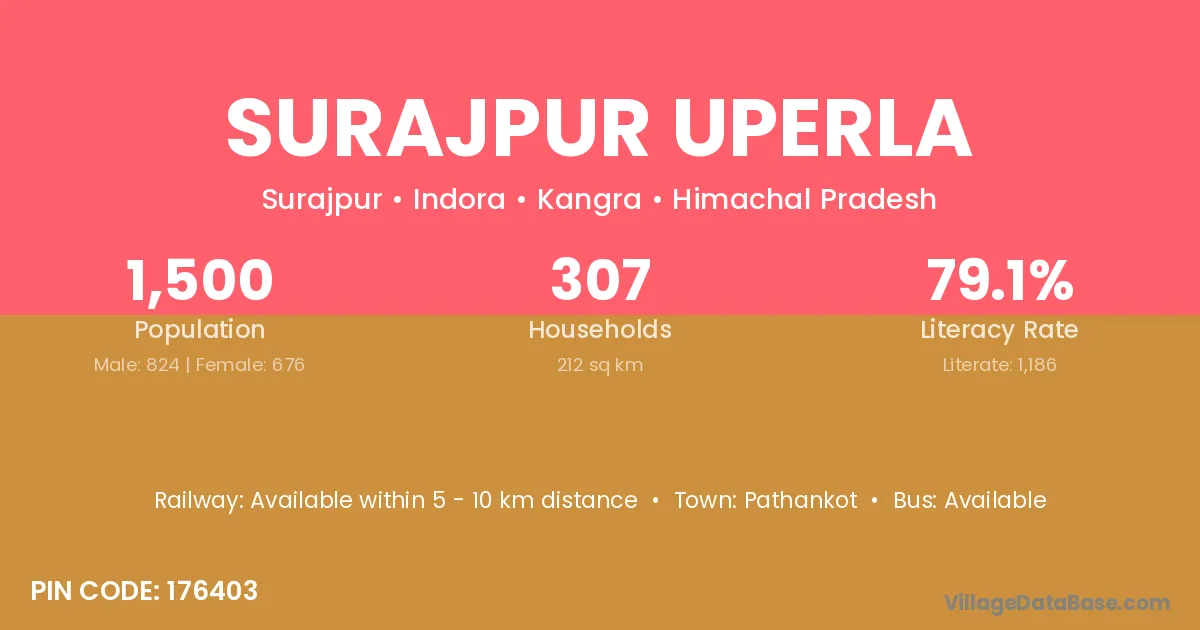 Pathankot is the nearest town to Surajpur Uperla village for major economic activities
