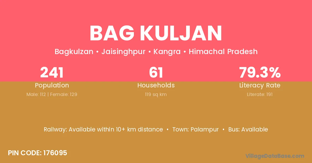 Palampur is the nearest town to Bag Kuljan village for major economic activities