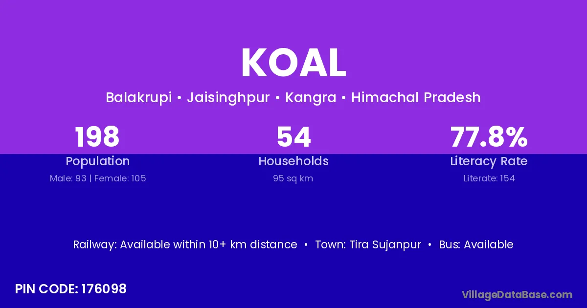 Tira Sujanpur is the nearest town to Koal village for major economic activities