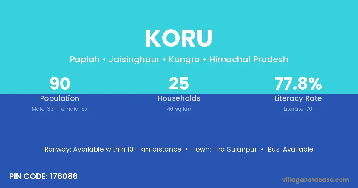 Tira Sujanpur is the nearest town to Koru village for major economic activities