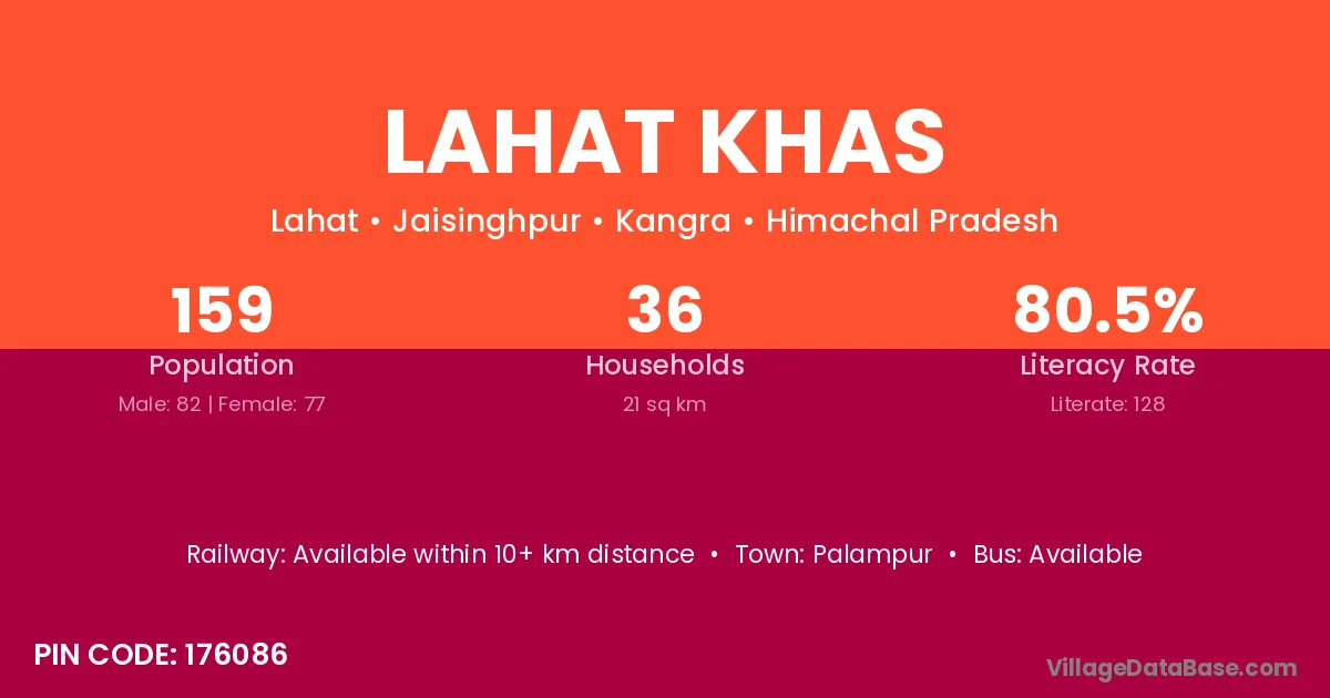 Palampur is the nearest town to Lahat Khas village for major economic activities