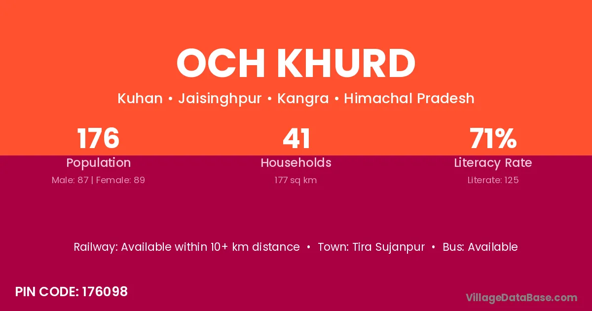 Och Khurd village has a total population of 176 people, of which 87 are males and 89 are females.