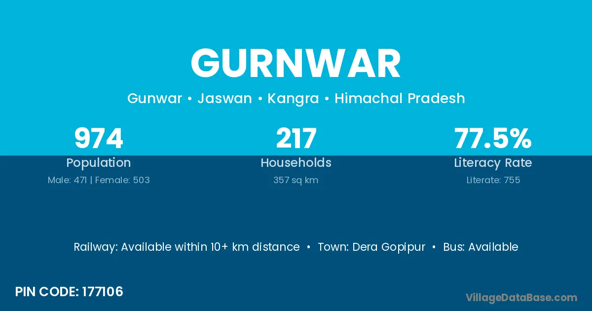 Gurnwar village has a total population of 974 people, of which 471 are males and 503 are females.