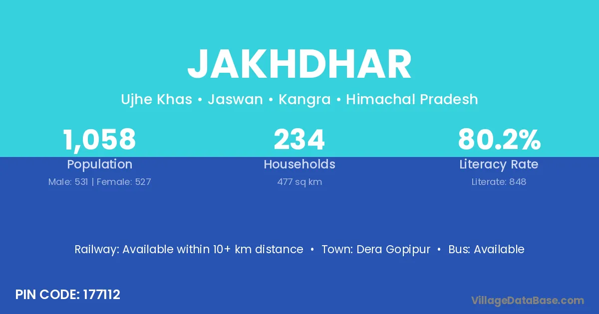 Jakhdhar village has a total population of 1,058 people, of which 531 are males and 527 are females.