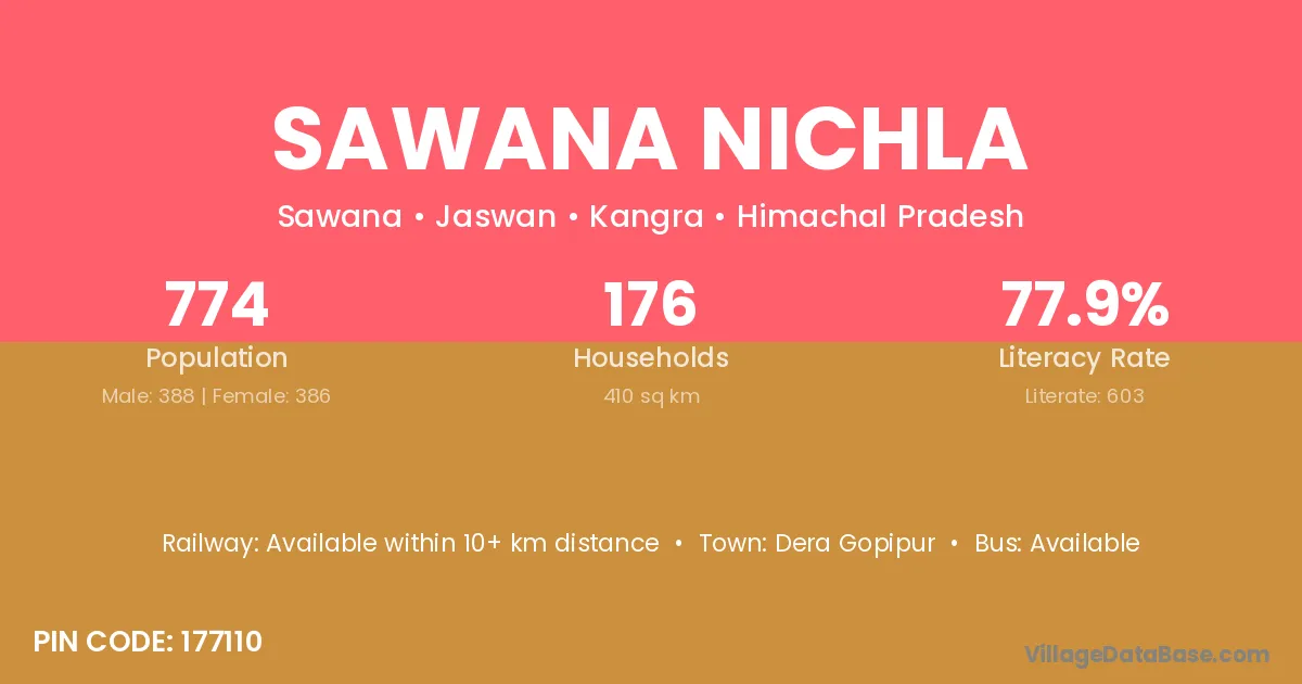 According to Census 2011 information, the village code of Sawana Nichla village is 177110.