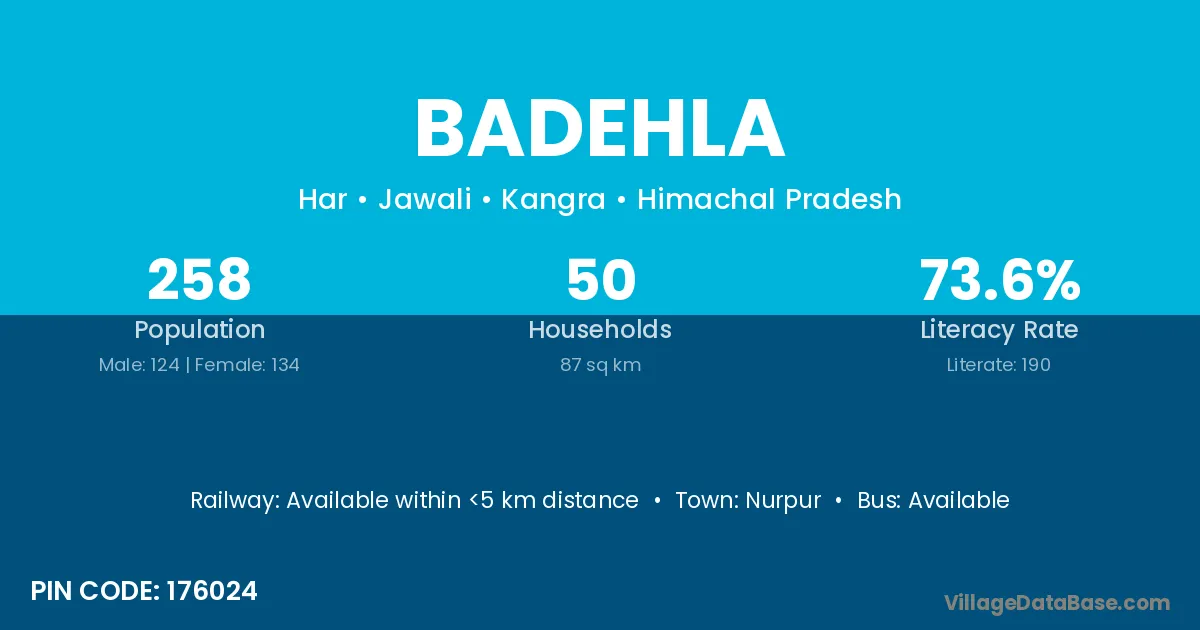 According to Census 2011 information, the village code of Badehla village is 176024.