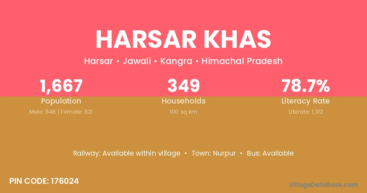 According to Census 2011 information, the village code of Harsar Khas village is 176024.