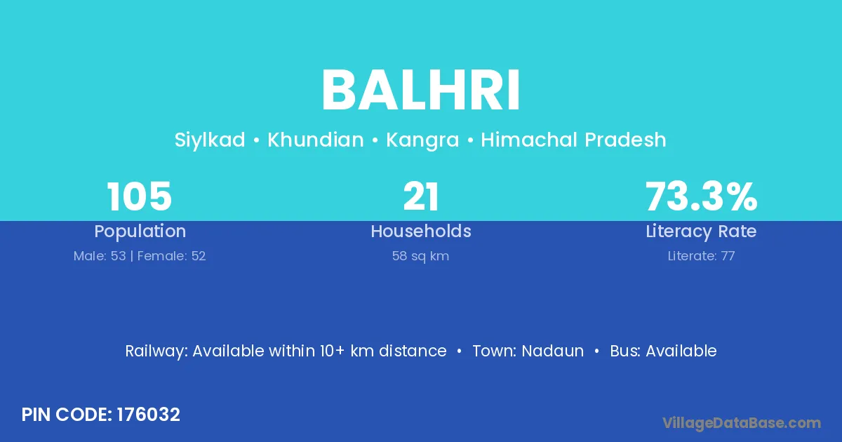 Balhri village has a total population of 105 people, of which 53 are males and 52 are females.