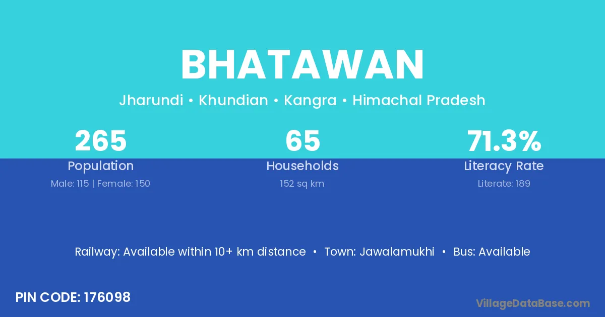 Jawalamukhi is the nearest town to Bhatawan village for major economic activities