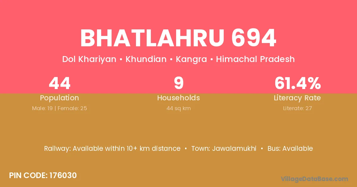 Bhatlahru 694 village has a total population of 44 people, of which 19 are males and 25 are females.