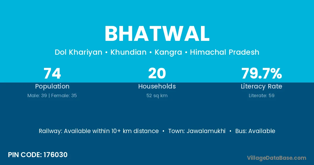 Jawalamukhi is the nearest town to Bhatwal village for major economic activities