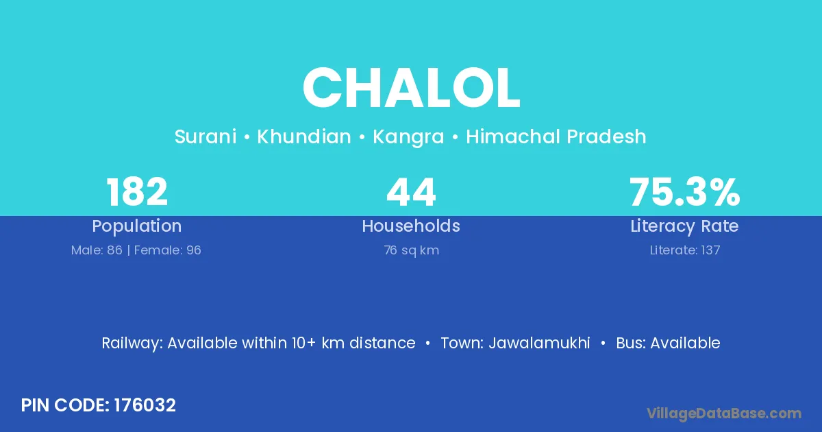 Jawalamukhi is the nearest town to Chalol village for major economic activities