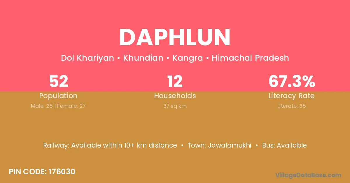 Daphlun village has a total population of 52 people, of which 25 are males and 27 are females.