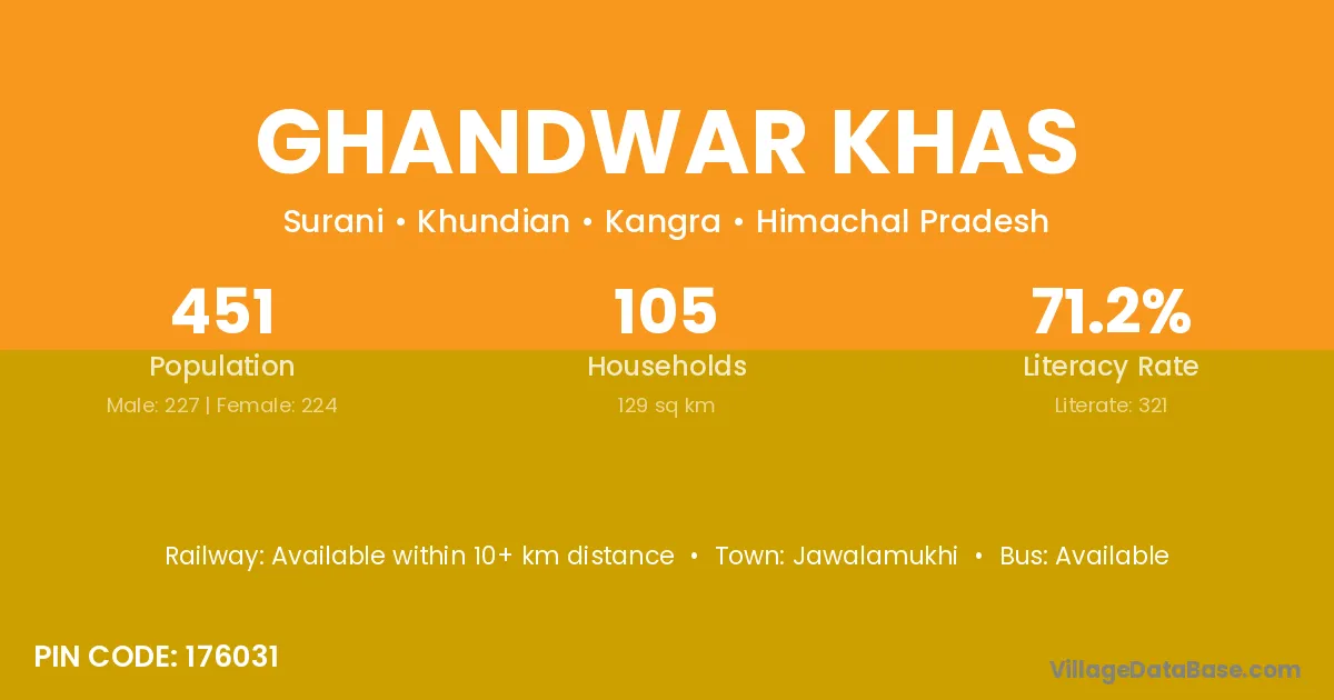 Ghandwar Khas village has a total population of 451 people, of which 227 are males and 224 are females.