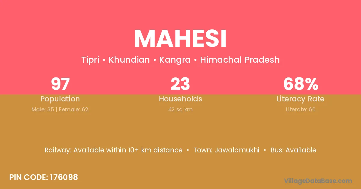 Jawalamukhi is the nearest town to Mahesi village for major economic activities
