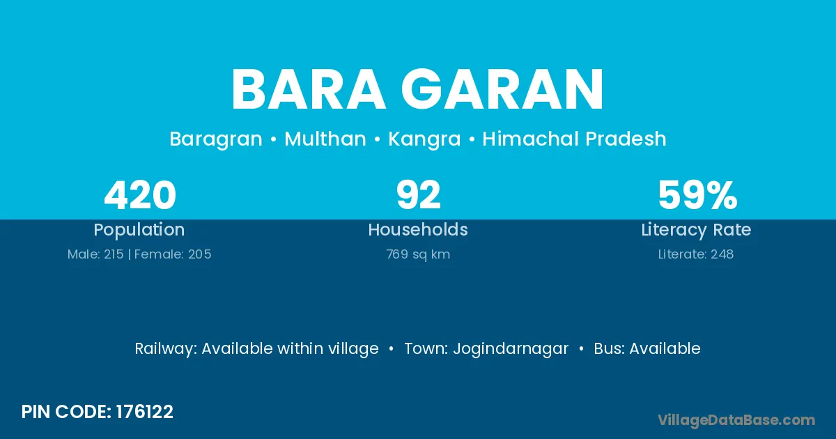 Jogindarnagar is the nearest town to Bara Garan village for major economic activities