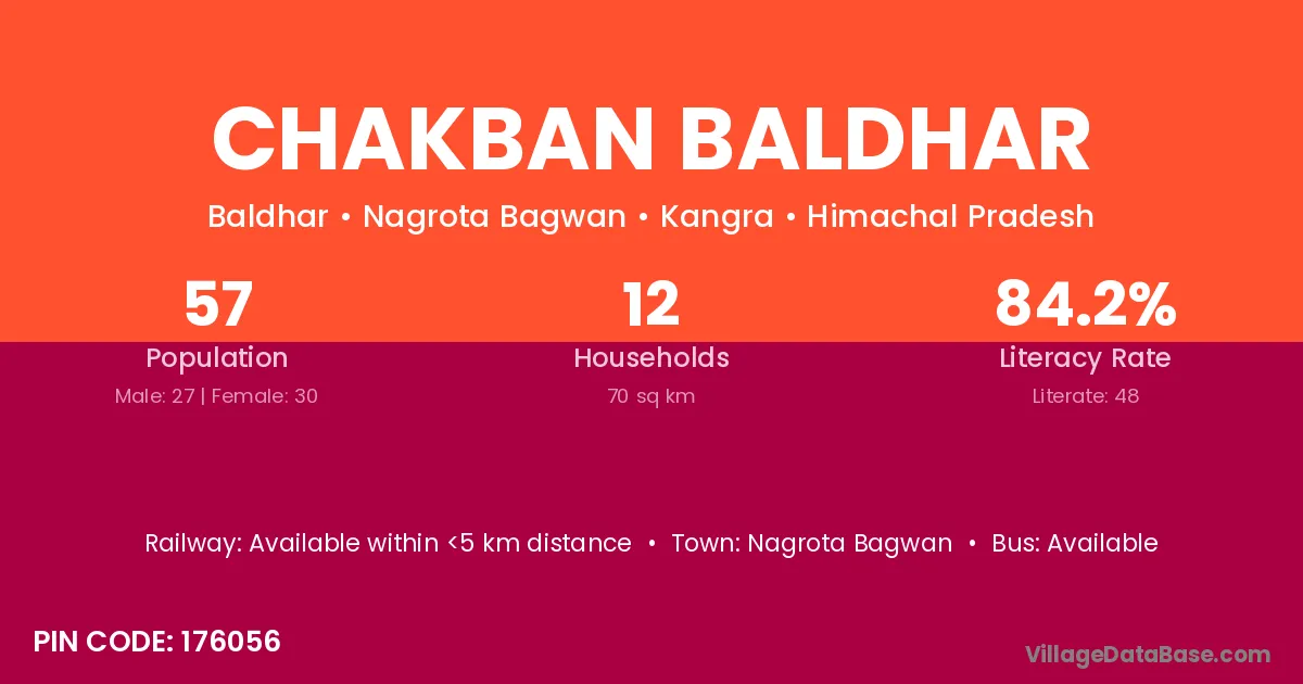 Nagrota Bagwan is the nearest town to Chakban Baldhar village for major economic activities