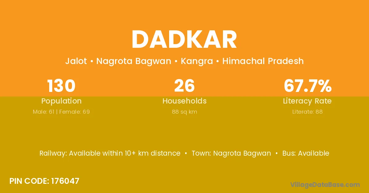 Nagrota Bagwan is the nearest town to Dadkar village for major economic activities