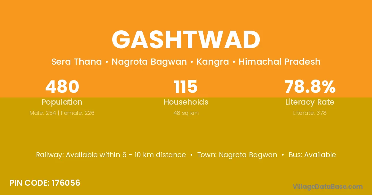 Nagrota Bagwan is the nearest town to Gashtwad village for major economic activities