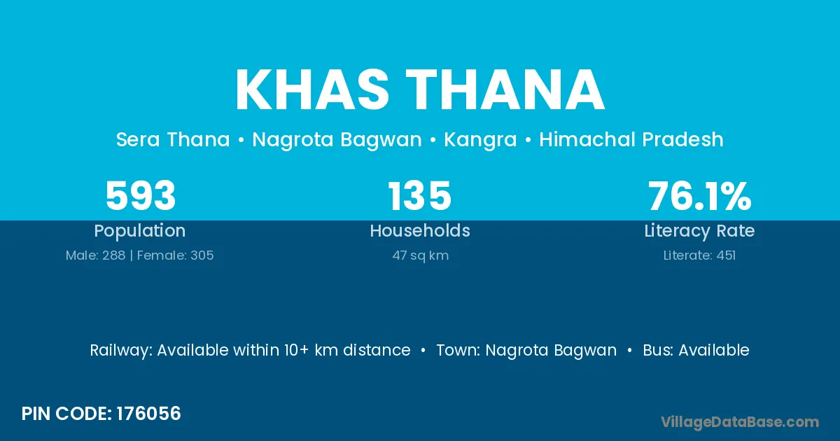 Nagrota Bagwan is the nearest town to Khas Thana village for major economic activities
