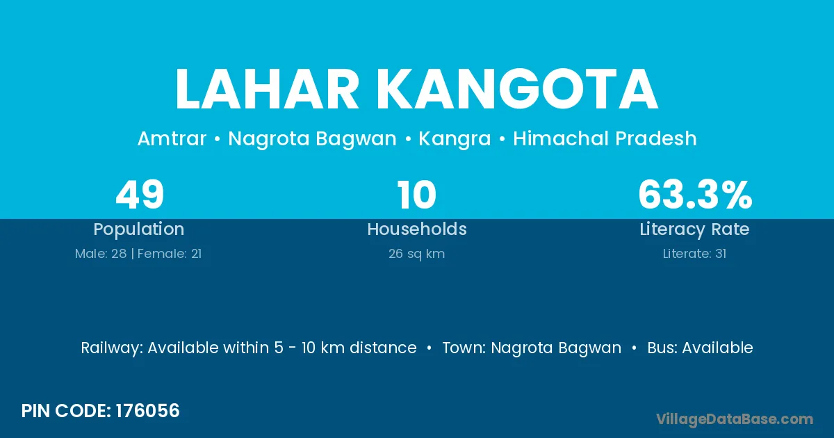 Nagrota Bagwan is the nearest town to Lahar Kangota village for major economic activities