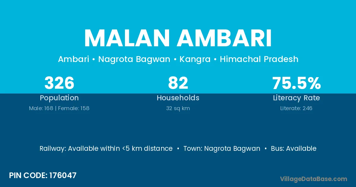 Nagrota Bagwan is the nearest town to Malan Ambari village for major economic activities