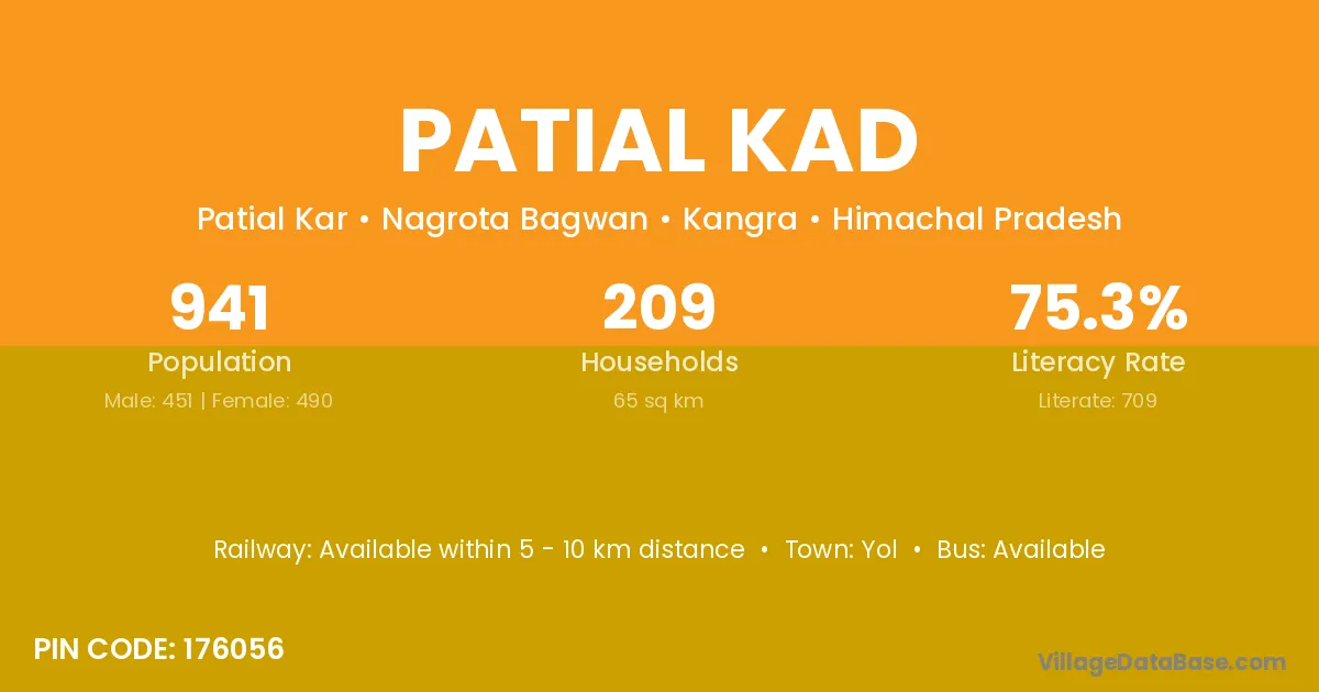 Patial Kad village has a total population of 941 people, of which 451 are males and 490 are females.
