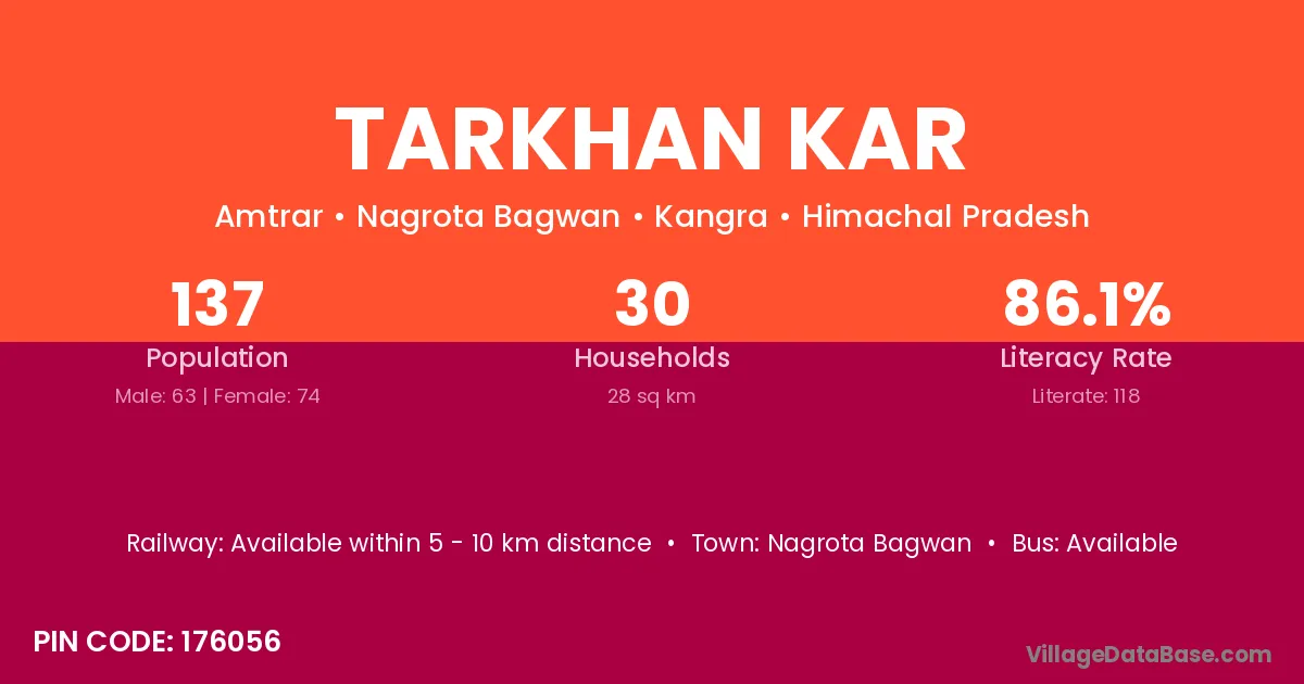 Nagrota Bagwan is the nearest town to Tarkhan Kar village for major economic activities