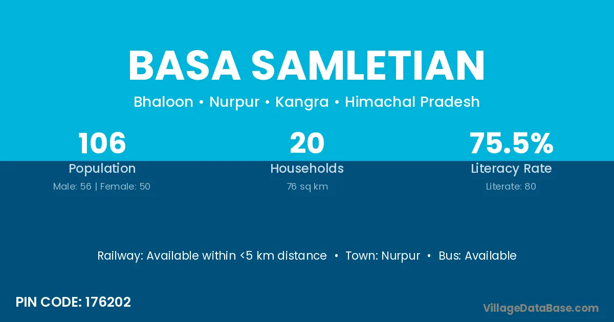 Nurpur is the nearest town to Basa Samletian village for major economic activities