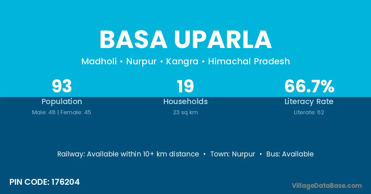 Nurpur is the nearest town to Basa Uparla village for major economic activities