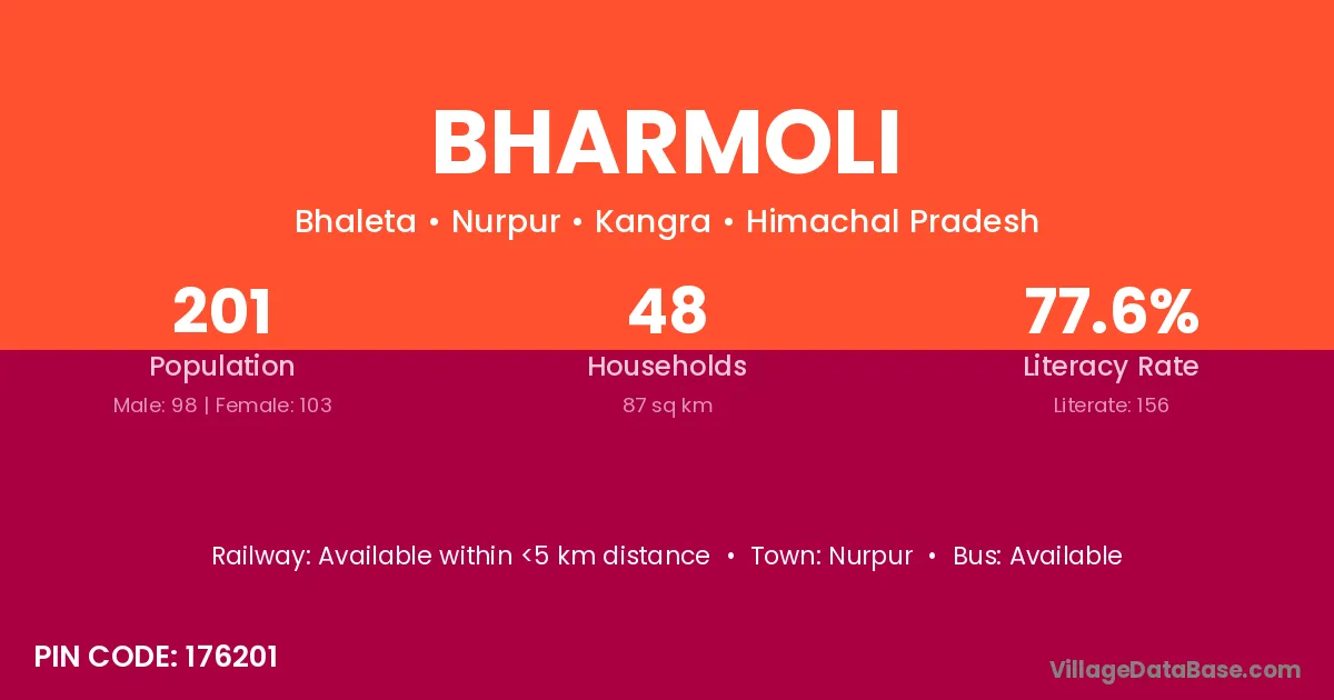 Nurpur is the nearest town to Bharmoli village for major economic activities