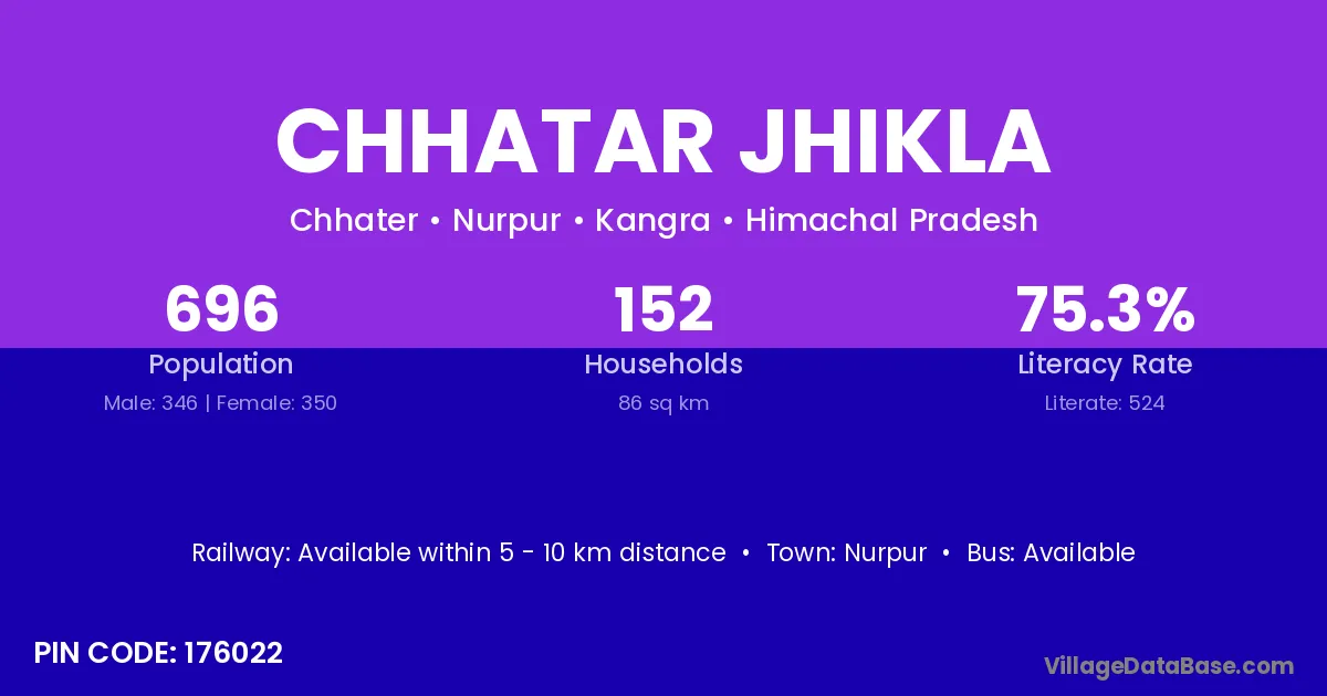 According to Census 2011 information, the village code of Chhatar Jhikla village is 176022.
