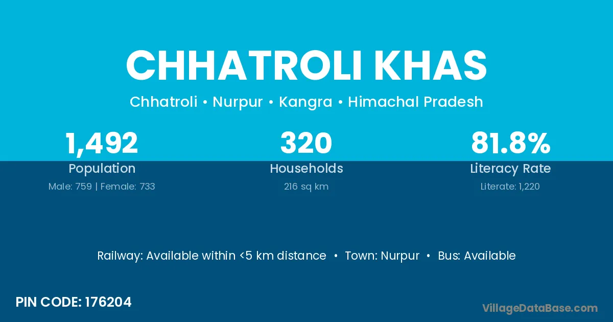 According to Census 2011 information, the village code of Chhatroli Khas village is 176204.