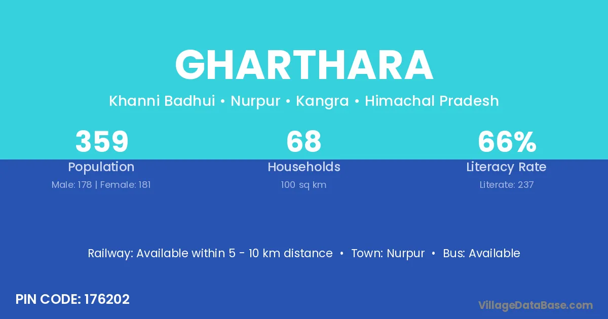 According to Census 2011 information, the village code of Gharthara village is 176202.