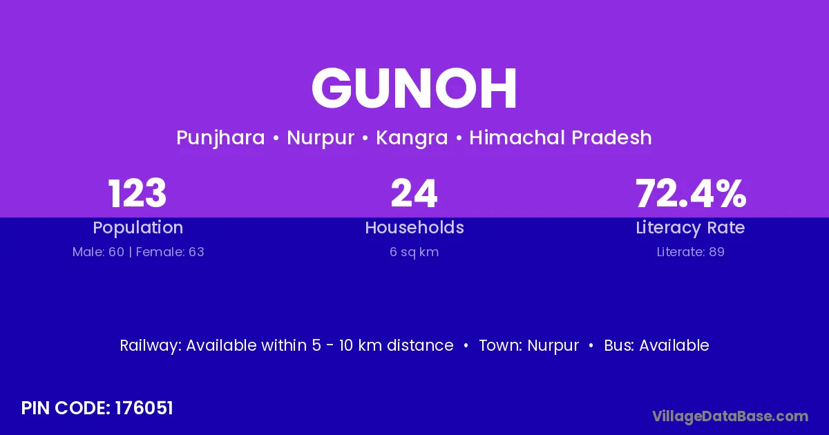 Nurpur is the nearest town to Gunoh village for major economic activities