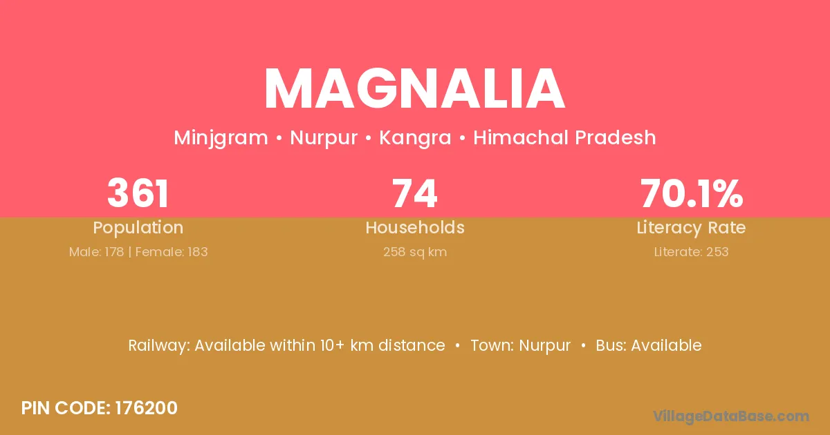 Magnalia village has a total population of 361 people, of which 178 are males and 183 are females.