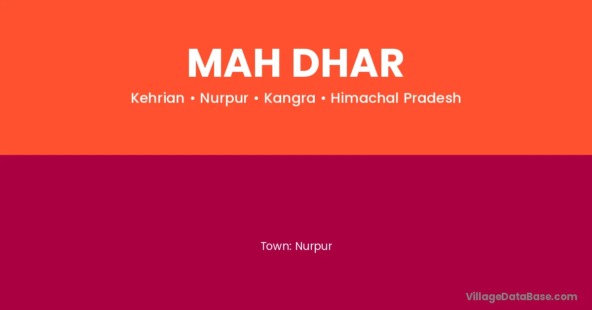 Nurpur is the nearest town to Mah Dhar village for major economic activities